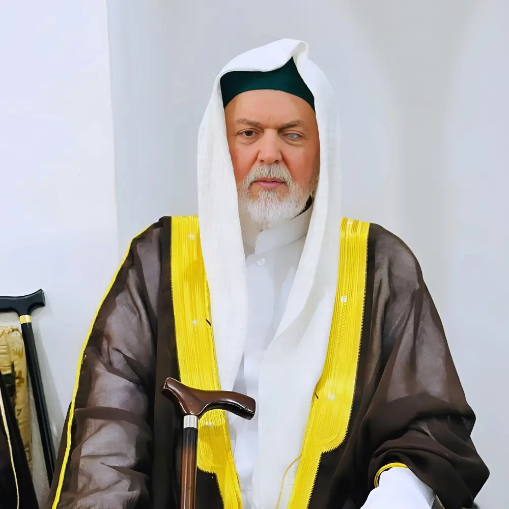 Shaykh Mukhlif al-‘Ali al-Hudayfi al-Qadiri al-Husseini (b. 1976, Tabqa, Syria) is a distinguished scholar, imam, and spiritual guide of the Qadiriyya ‘Aliyya order. Coming from a noble prophetic lineage through Imam al-Rifa‘i and Sayyid ‘Abd al-Qadir al-Jilani, he devoted his life to Islamic learning and service. After early studies in Qur’an, fiqh, hadith, and Arabic, he pursued religious sciences in al-Hasakah and Aleppo, later teaching subjects such as fara’id, usul al-fiqh, and ‘aqidah.
